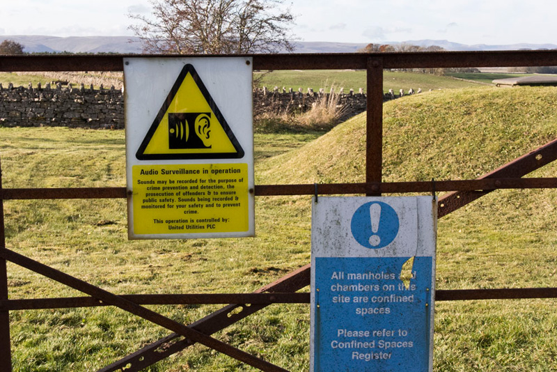 Seeing the signs on the gate to the reservoir installations, we for once kept very very quiet.