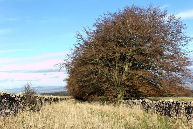 The path was rough walking, but unlike many such recently was not muddy, much to Dad's relief. At first to the left were a line of mature and impressive beech trees.