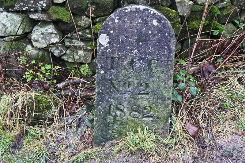 We were the only car on arrival, but this is a popular start point for walks hence Dad's early start from home. As he got ready we looked about. "What's that stone over by the wall?", pointed Tetley.