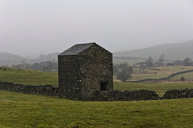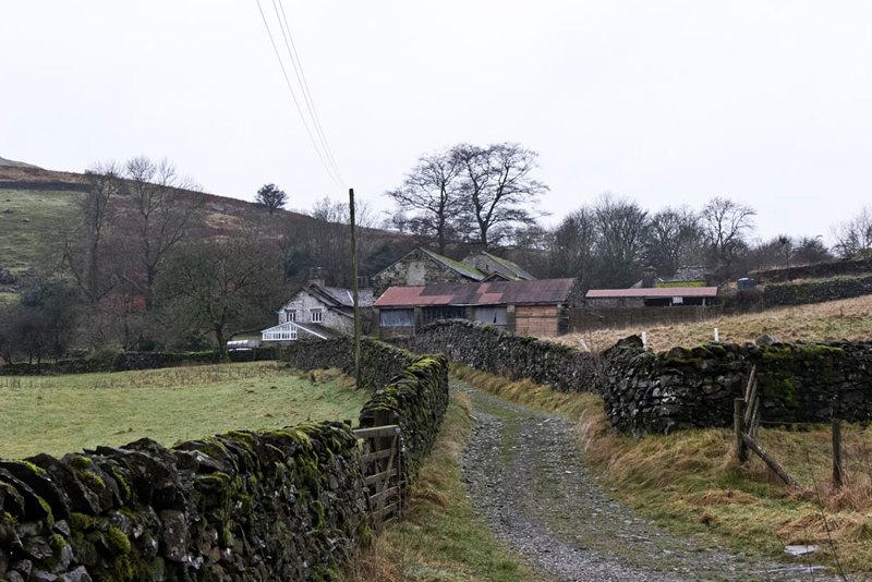 A stony track led on beside the River Kent, then bending away right towards the buildings of Browfoot.