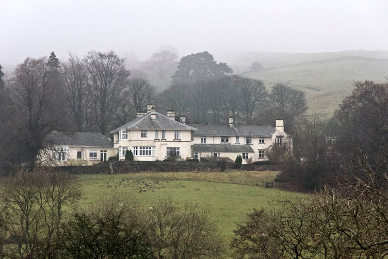 The road led on bending right in a circle of the outdoor centre to the pass a few other houses and the farm, including this called the Old Laundry, where the tarmac ends.