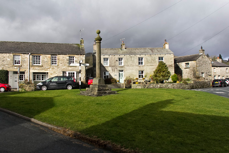 A lady was passing and Dad chatted to her for a short way until she reached her house. Soon we came to the green and market cross. The structure is Grade II listed. The base, being a conglomerate of three steps of millstone grit, probably dates from the 15th century. The Tuscan pillar of millstone grit and ball finial dates from c1830s.