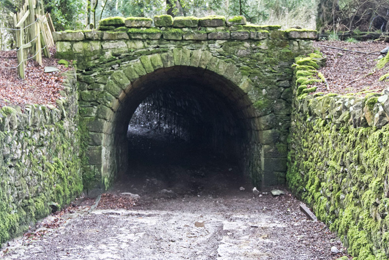 At the junction with Long Lane, we kept ahead to descend the stony track, and through the tunnels...