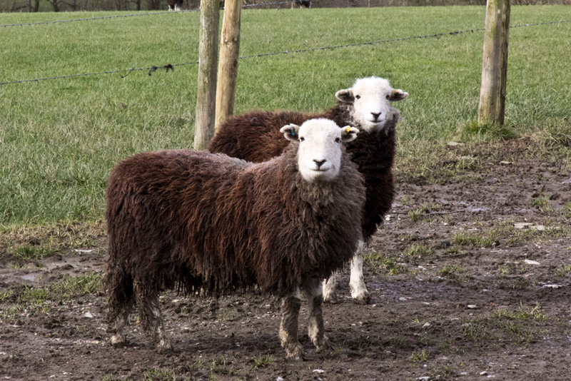 Further on some of our lovely Herdwicks were wandering in and out of the fields on either side. These two posed for Dad. From the colour of their fleece, Shaun said, "they would have been born last year."