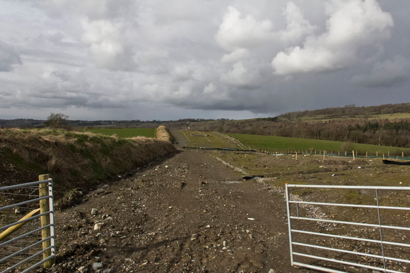 Onward the fence/hedge now to the right, and crossing where part of a new pipeline has been laid.