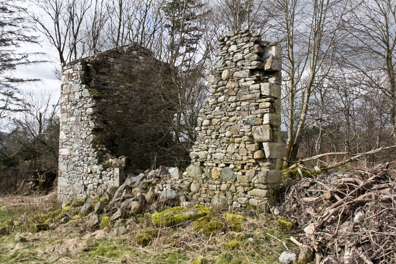 Headed on across the field and beyond the next gate followed the rough track, fording a stream and passing this ruined barn.