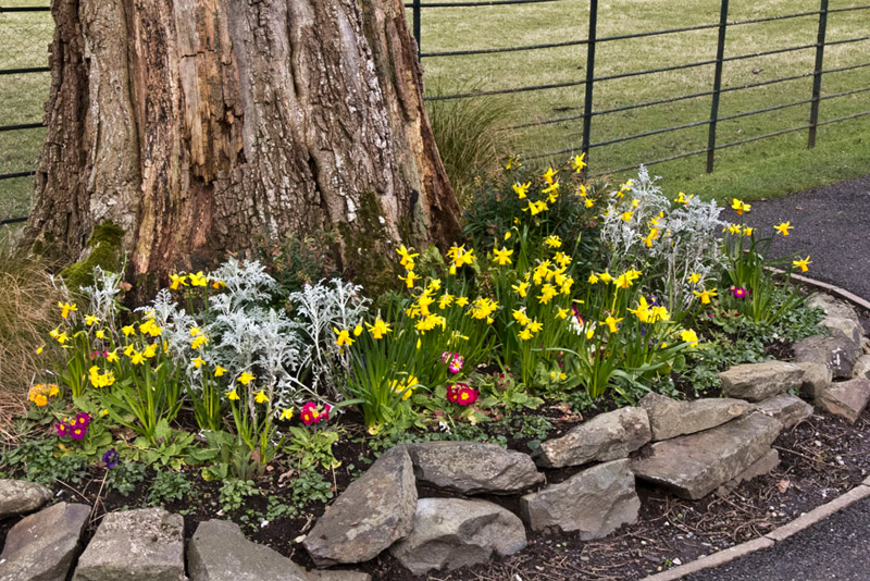 "Look at those pretty spring flowers by the tree", called out Tetley.