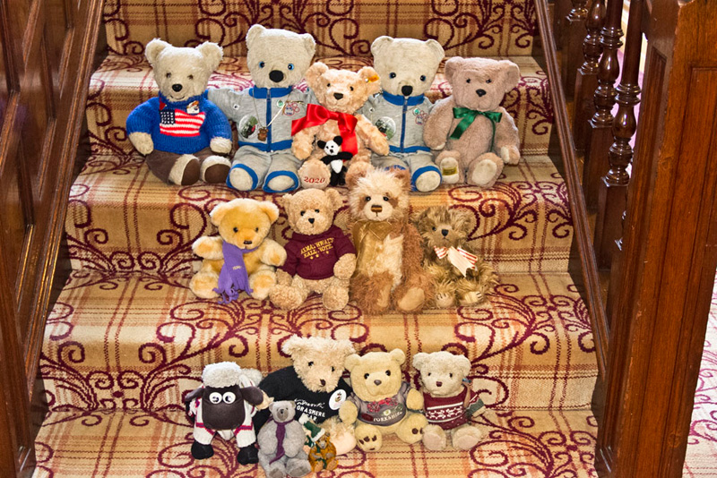 Fletcher was adopted on Dad and Uncle Brian's very first visit to Armathwaite Hall in 2009, and ever since then, he and his girlfriend Polly, have invited some of our hug pals to stay. The number got up to about 14, but then Uncle Brian put his foot down and said, "no more than eight." Here are Polly & Fletcher on one of the previous visits.