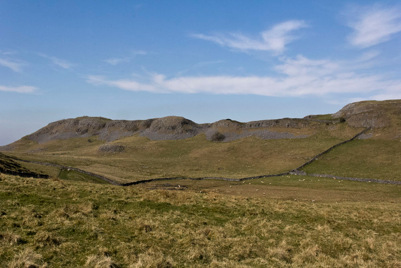 A short steep descent by the wall brought us into the valley, with this superb view of the ridge towards Pot Scar that we would walk along.