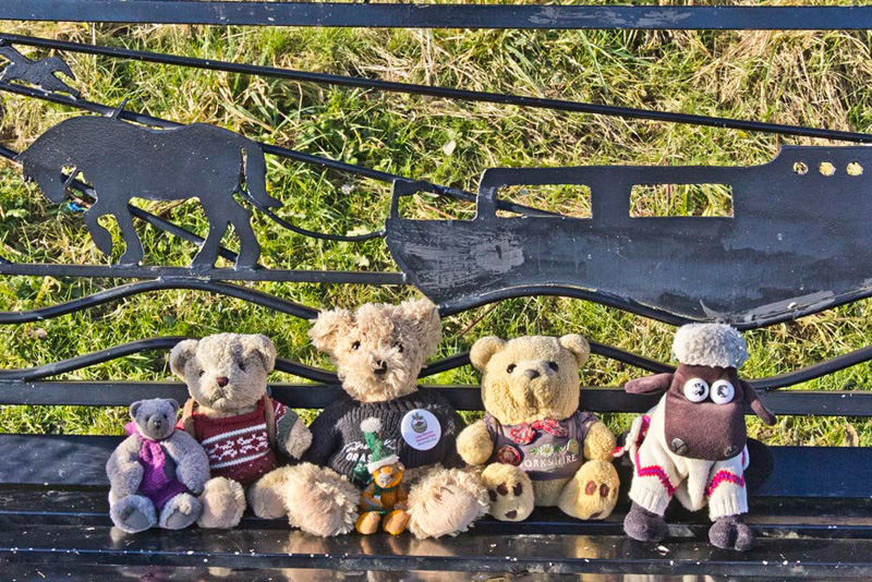 A few yards on is a seat that depicts a horse towing a barge, harking back to the time when the canals were used extensively for the carriage of goods, before the advent of the railways. The seat bears this dedication -