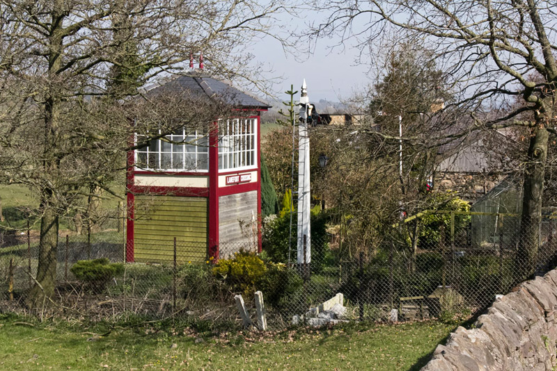The line of the old railway is close to the road, and soon we came to Lanefoot Crossing. A house now straddles the trackbed. "A railway enthusiast", said Tetley, pointing to the signal box and signal.
