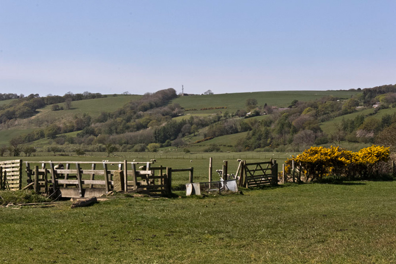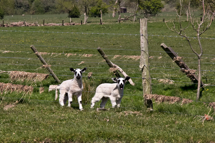 Over the bridge we kept by the fence on the right to climb another stile, by which this ewe was standing with her lambs.