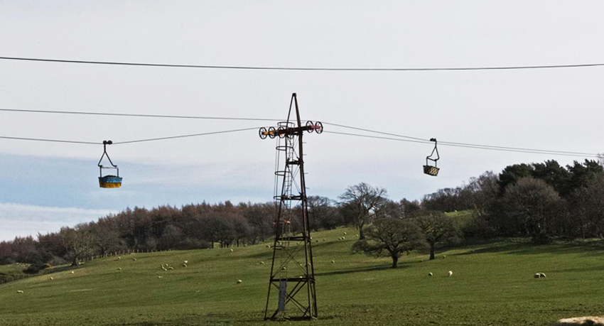 Further on we passed Claughton Manor Brickworks where the aerial ropeway brings the shale down from the quarry.