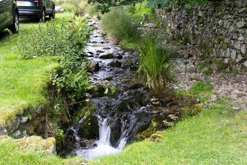 Just at the edge pretty Cinderdale Beck flows under the road and on into Crummock Water.