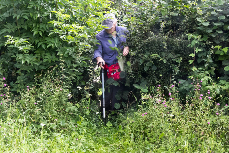 ...and to a rather overgrown stile onto the A6. Here Uncle Eric forces his way through.