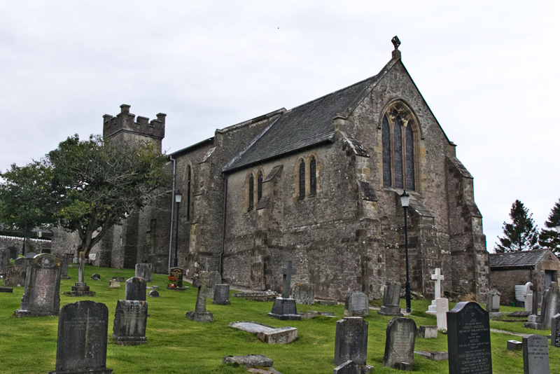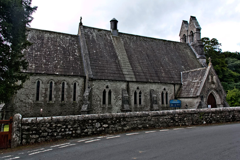 A range of buildings are attached to the church. That part at the left end with the cross on the roof is the old mission church, now the parish hall.