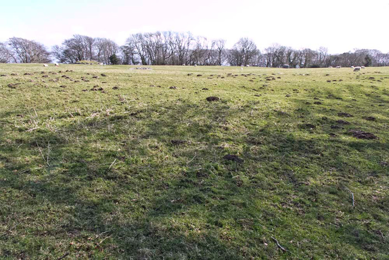 "Now, we have to walk across to the far side by the trees to see the other three." There he instructed, "stand looking back to the summerhouse mound." He then pointed right. "These are the next two stones, and then looking between these and the mound is the third."