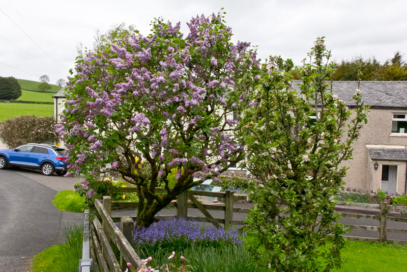 A few yards on by some houses, this lilac tree was in blossom with the bluebells round the base. This was in May 2022, and Little Eric called out, "take a picture Dad, to add to our narrative."