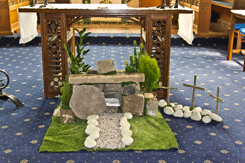 After a minute Tetley said, "I think I have worked it out. It is a telling of the Easter story. The three crosses represent the crucifixion. The stone structure represents the cave in which Jesus was buried. The round stone is rolled aside indicating the resurrection, and the folded cloth represents the shroud Jesus's body was wrapped in."