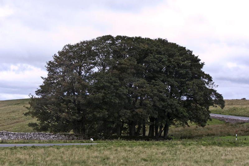 The path led on and on across the wide open plain with the vast sky above us. Eventually it led to the main road at the junction with the road from Great Asby, by this impressive clump of trees.