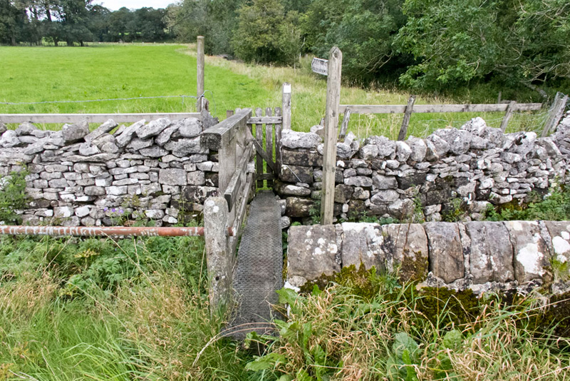 Just before the buildings, Shaun pointed, "we go over the stile right in the wall."