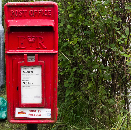 As we strolled towards the green, Little Eric called out, "there's the postbox. You know I like us to include them in the story."