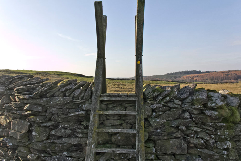 Pointing to the wall behind us Southey advised, "we should climb that tall stone step stile, and then follow the waymarked route over pastures."