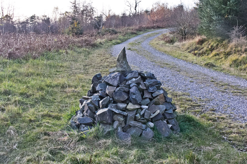 They just ignored us thankfully, as we followed a tractor track to a gate in to Chapel House Plantation once again. The narrow path led to a forest road, the junction marked by this nice cairn. "Worth a picture Dad", suggested Tetley.