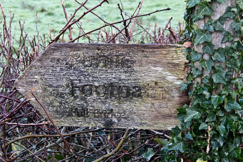 Keeping a look out, it was Grizzly who called out, there's the sign pointing along that hedged track. From its condition the sign has been there for many years."