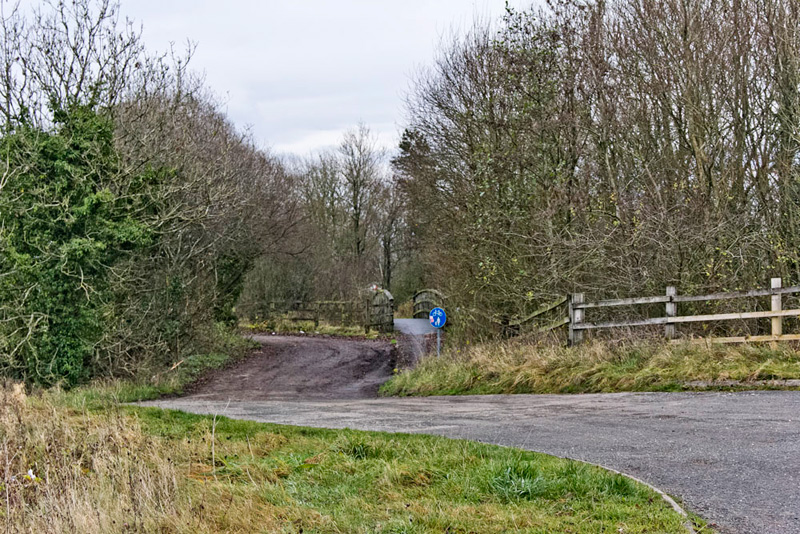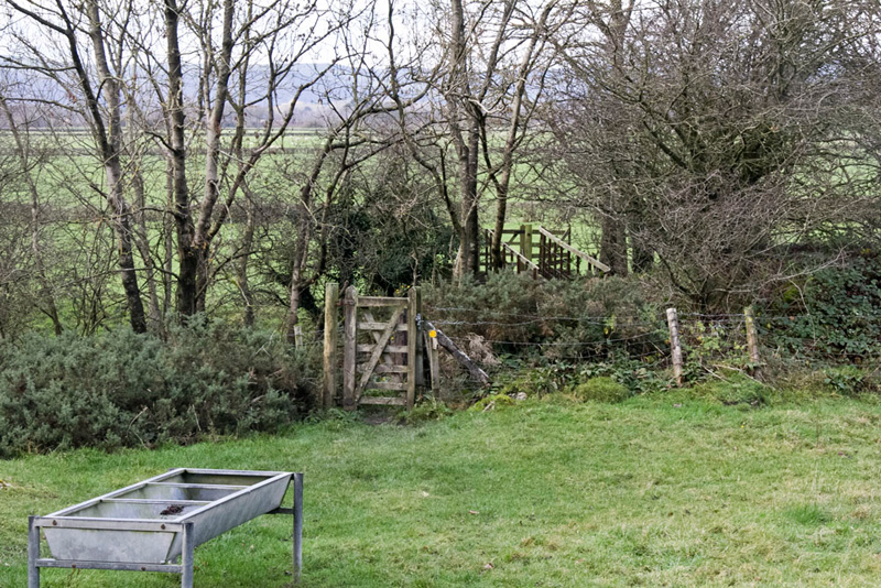 The hedged track curved right and over the cattle grid, we came to Swimmer Farm, so we were still no wiser about Bull Bridge. In the bottom right of the picture is the kissing gate that was our onwards route.