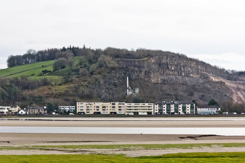Across the Kent estuary, Tetley pointed, "there's the huge quarry behind the houses alongside the road from Milnthorpe to Arnside. We walked round the top of the quarry and made the descent through those green fields to the road."
