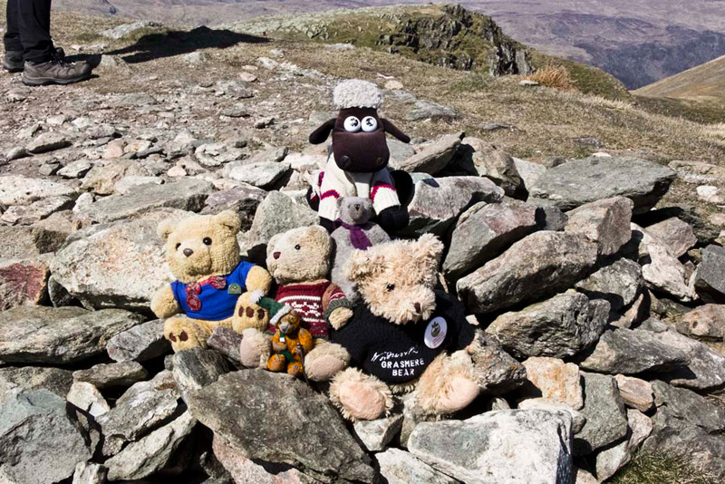 Helvellyn is one of the most popular mountains in the Lake District so it came as no surprise there were lots of people here. Fortunately the trig point was clear at the time, so Little Eric called out, "let's have our picture sitting on top."