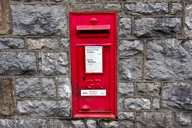 We had seen a train pass just minutes earlier. Past the former station house now a private residence, Little Eric called out, "please take a picture of the post box embedded in the wall. It dates from the reign of King George V."