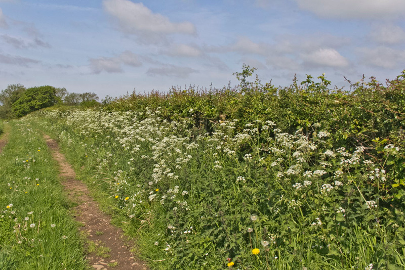 A track led across the field by the right boundary. "There is an abundance of spring flowers on the verge" commented Grizzly.