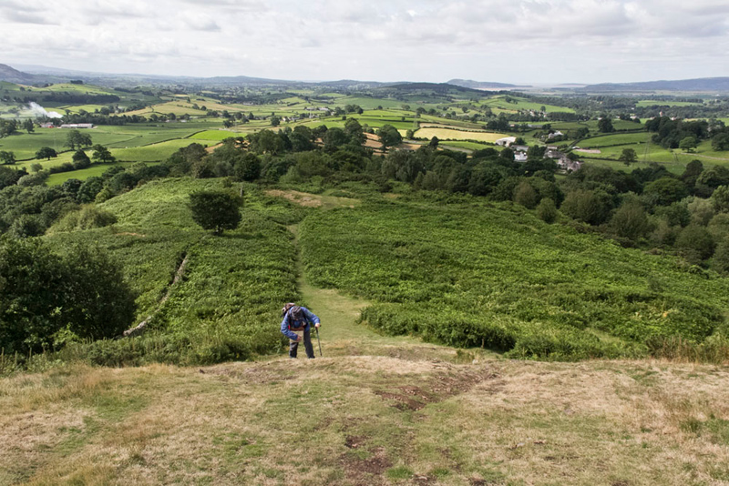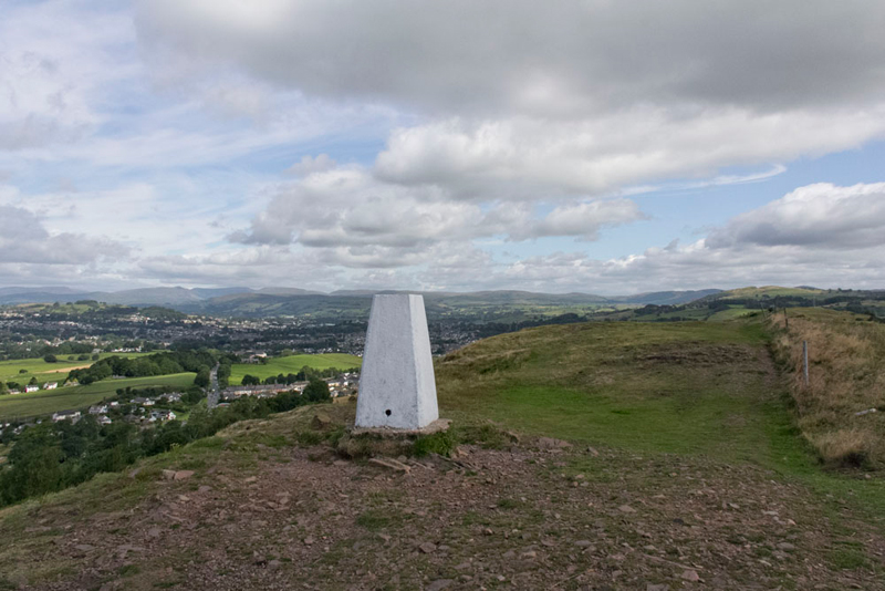 The summit gives extensive views over Kendal and beyond to the distant Lakeland Fells.