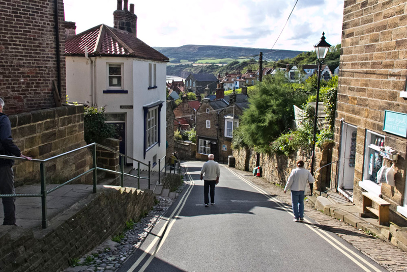 Out of the car park a clear sign for the Cleveland Way pointed right down the steep narrow road into the village.