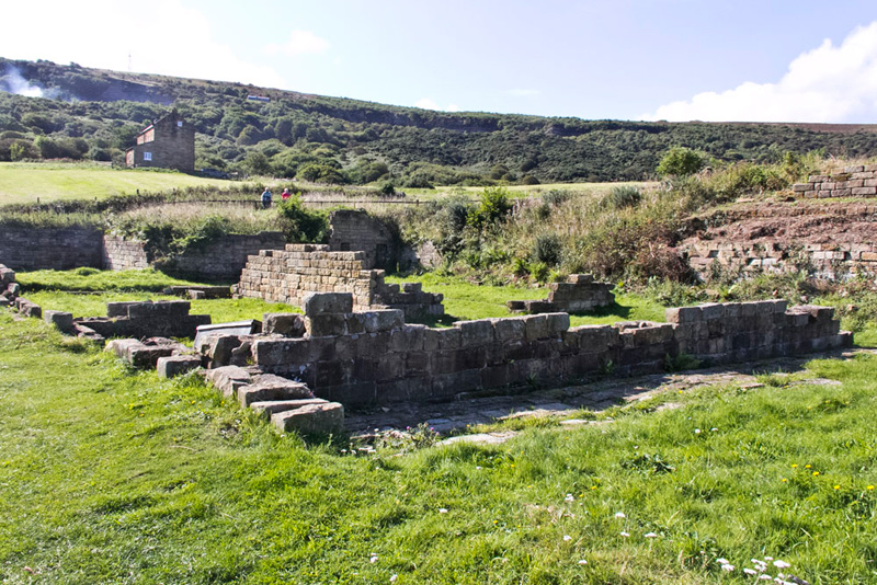 The works here were a thriving industry for just over 200 years, until it closed in 1860 after the introduction of cheaper manufacturing methods. Production was very labour intensive and up to 150 men worked to quarry the shale and produce the final product. This was an ideal location; the vast amounts of alum shale being quarried from the hills behind the works. Other materials human urine and seaweed were transported by boat, docking at the bottom of the cliffs, and from where the finished 'alum flour' product was transported across Britain and Europe.