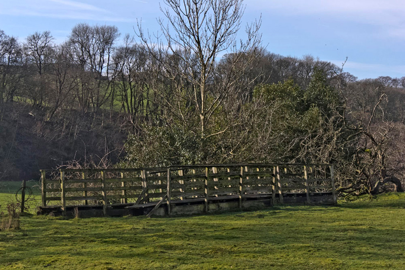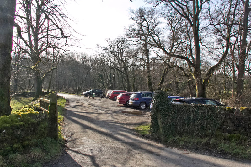 The narrow lane dropped down to join a wider road at the junction, to take us through the village and over Stoops Bridge the rough parking by the lane being immediately right.