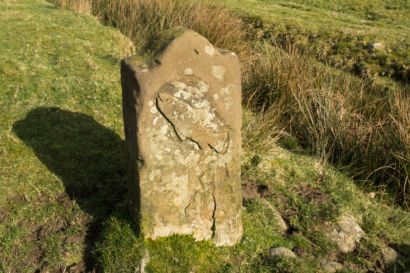 A little way on, Shaun said, "there's that stone, one of many marking the route of the Wyre Way long distance path."