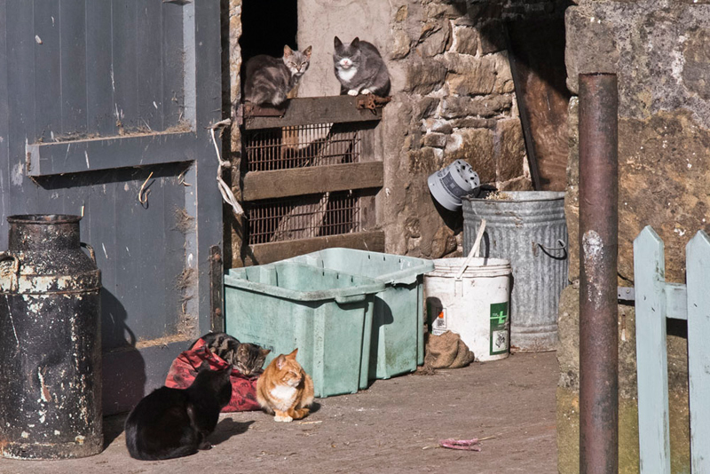 Passing the house and barn, Allen called out, "look there are the farm cats. Five of them!"