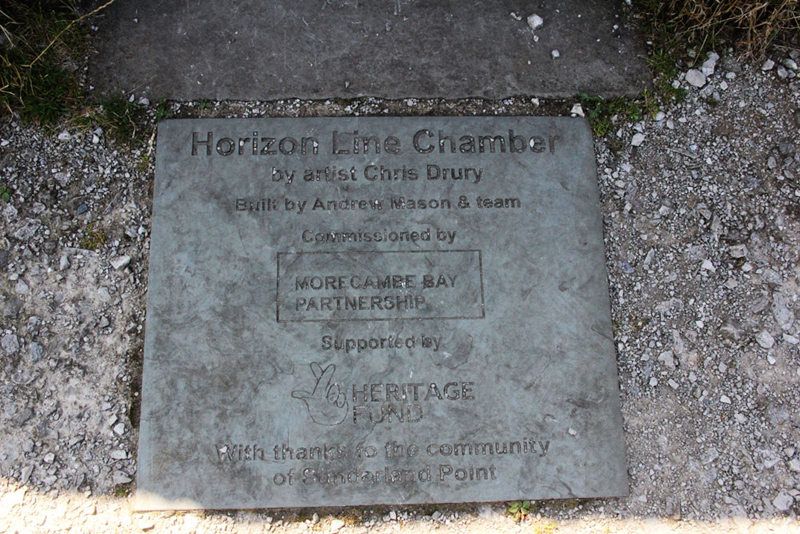 "I have some notes", said Grizzly. "The chamber was constructed from hundreds of reclaimed building stones unearthed at the former port settlement here at Sunderland. The sculpture resembles and upturned boat. Inside a self-contained lens inverts the outside world onto the chamber's lime plastered walls, capturing the sea and its changing conditions, the rich bird life and the unique light of the Bay in a transformed perspective. The sculpture is intended to encourage us to meditate on Morecambe Bay's evolving environment."