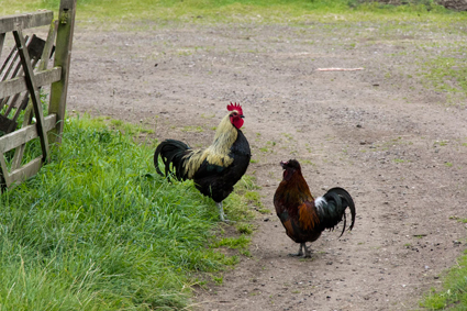 Up the pasture, a ladderstile on the left took us on the the access proper to the farm, where we were greeted by chickens and three young inquisitive goats.