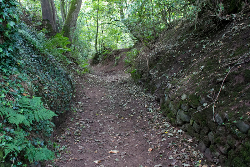 Joining the  forest track, Tetley remarked, "I recall being May when Shaun and I did the walk that the bluebells made a magnificent sight in the woods here. I think Dad that you probably took a picture. I would be nice to include it the the story."