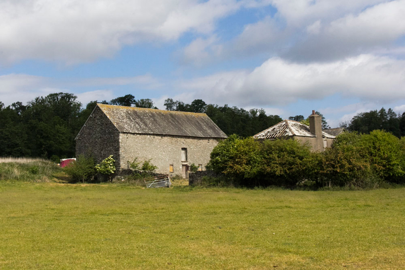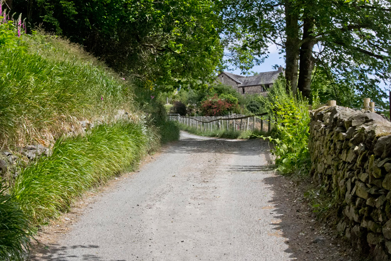 We had to come close here as the gate in the wall was directly behind. Keeping by the wall to the right the path led past these buildings, and onto the drive to Wall Nook.