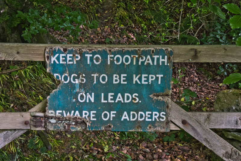 "The only poisonous snake in the country", said Tetley. "I can only recall us seeing another such sign on a track off the the back road from Ings to Troutbeck."