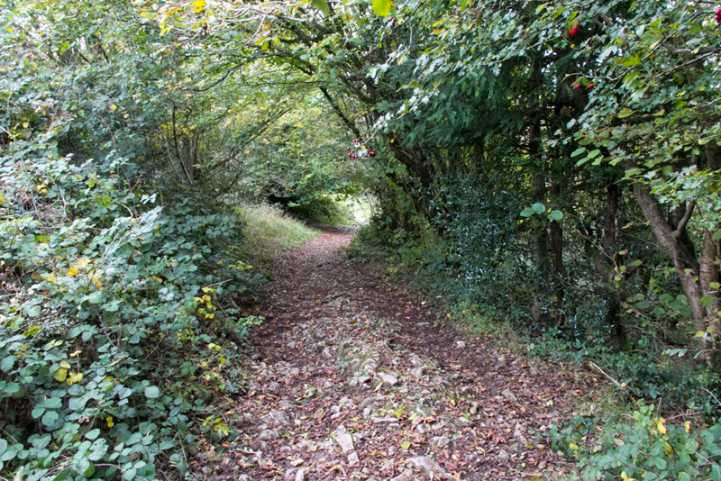 The clear well signed grassy track led on and on, with one short section of steep rocky descent. Part was through woodland.