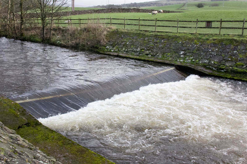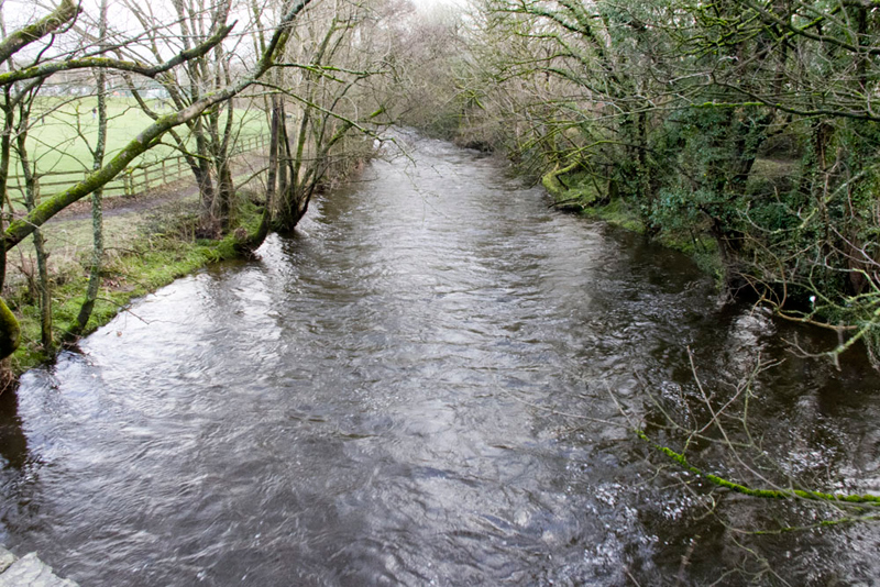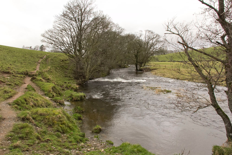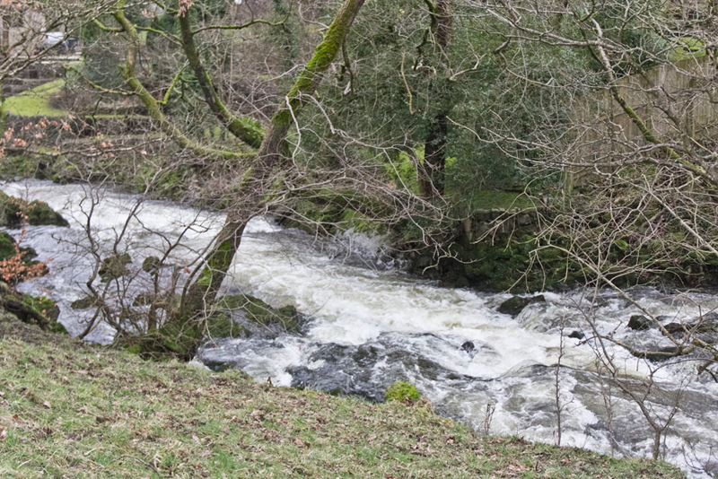 Below the the river was flowing fast swollen after the heavy rain yesterday.