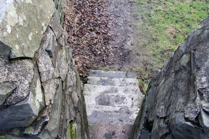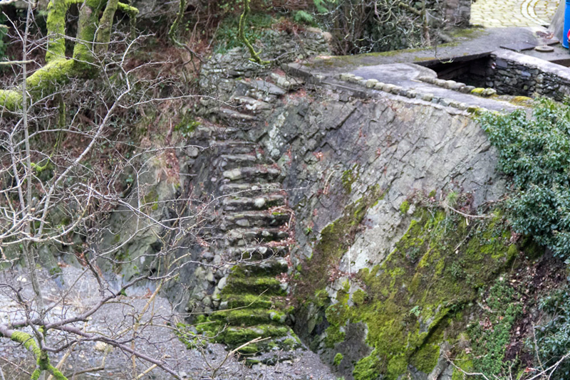 Reading from the instructions, Tetley said, "we should look for the narrow steps that descend to the waters edge from the site of Mint Mill."