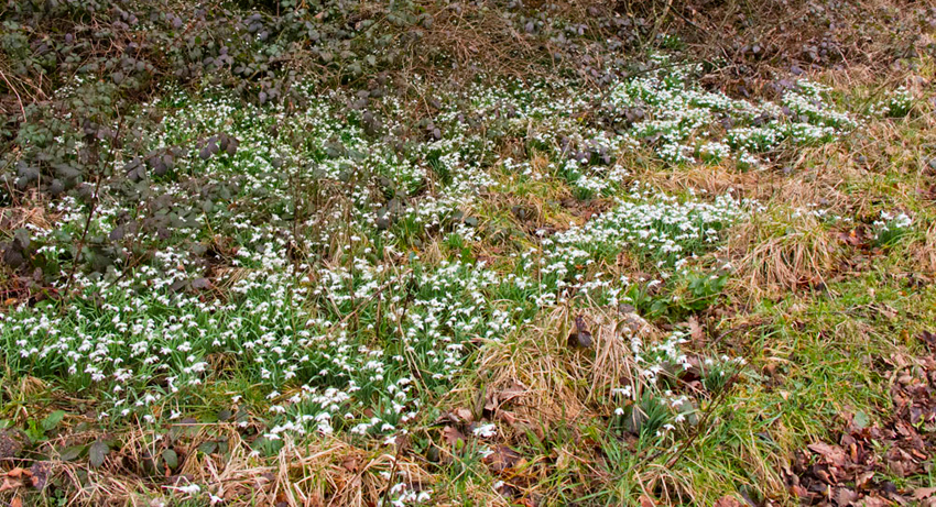 Walking on our progress was halted by Southey calling out, "just look at that bank of snowdrops. Beautiful."
