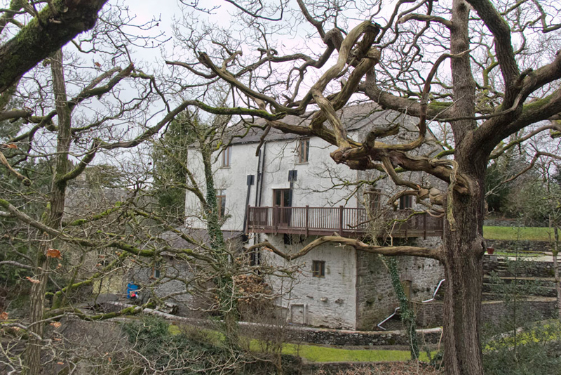 Beyond a gate by a building, we crossed the grassy area by more houses that were once part of a mill.